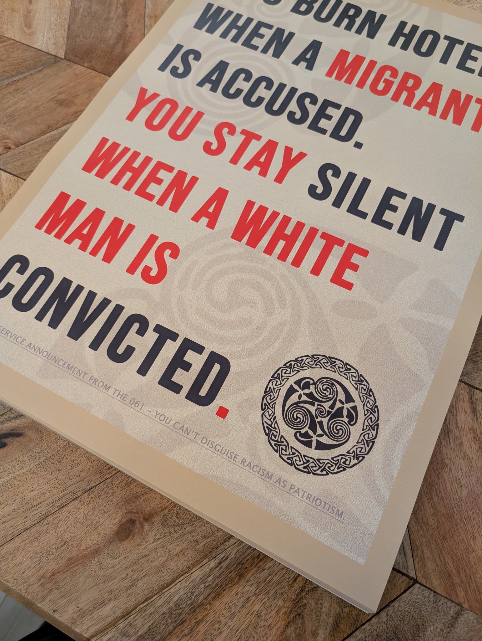 "You Burn Hotels” confronts the double standards at the heart of modern outrage and racism, how communities react when a migrant is accused versus when a white man is convicted. Hypocrisy in democracy. You can't disguise racism as patriotism.